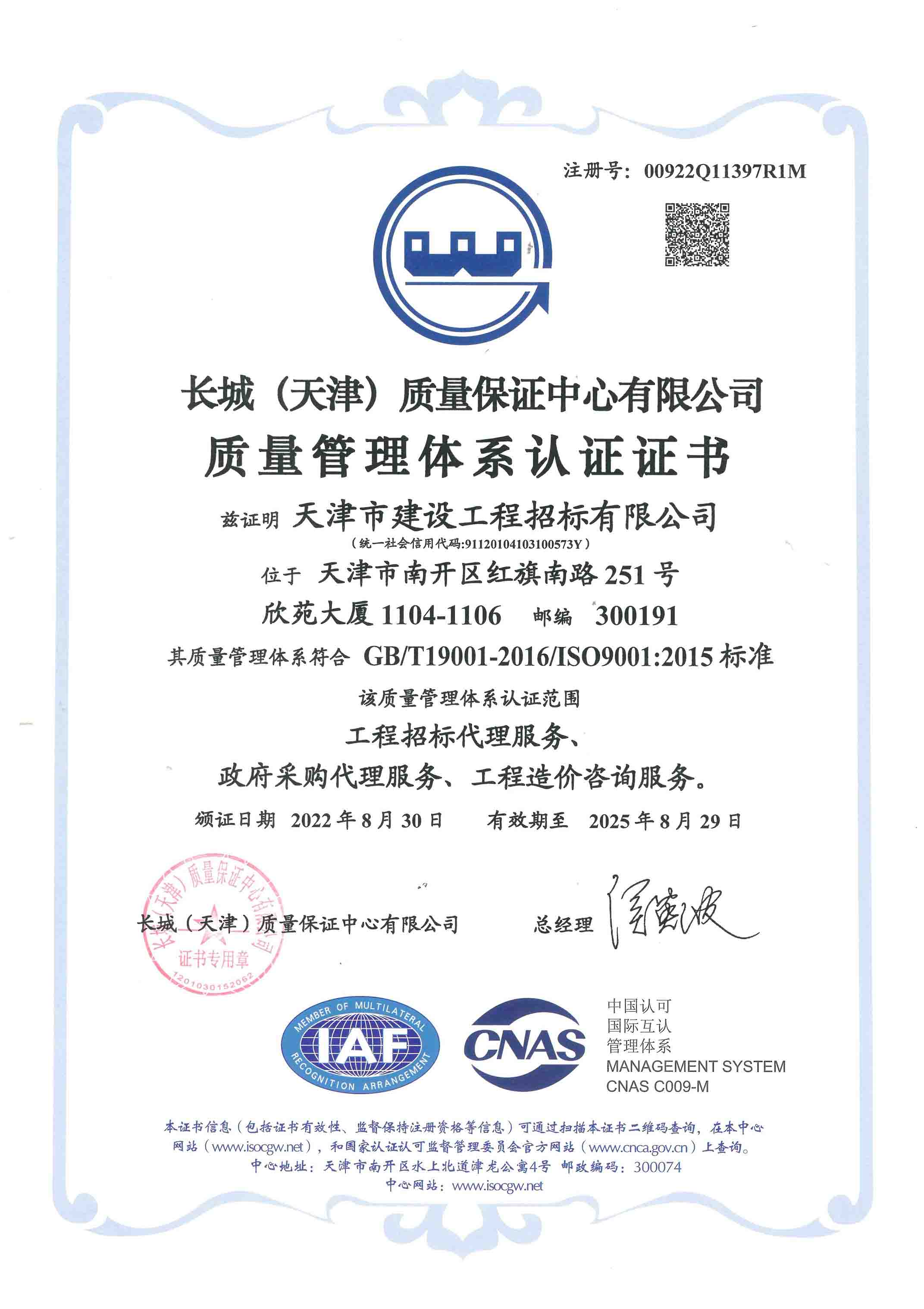 質(zhì)量管理體系認證證書(shū)