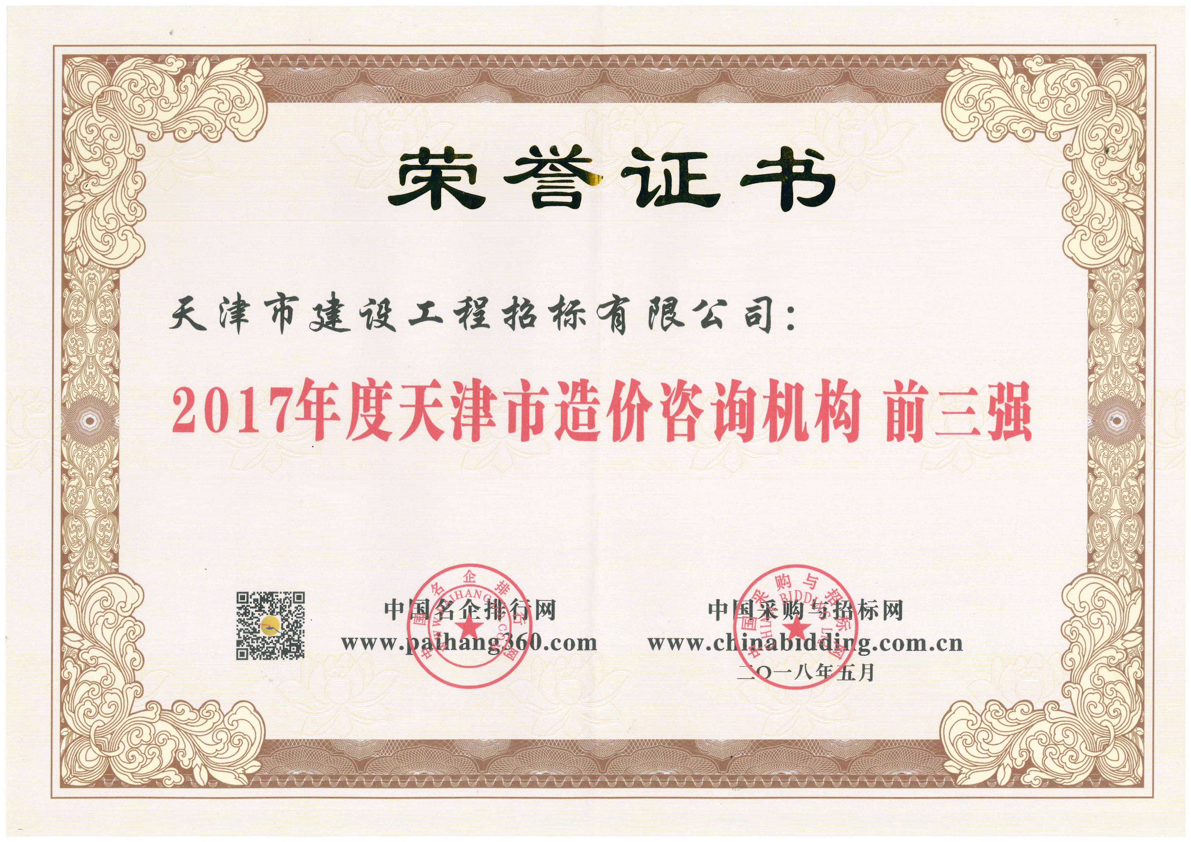 2017年度天津市造價(jià)咨詢(xún)機構 前三強