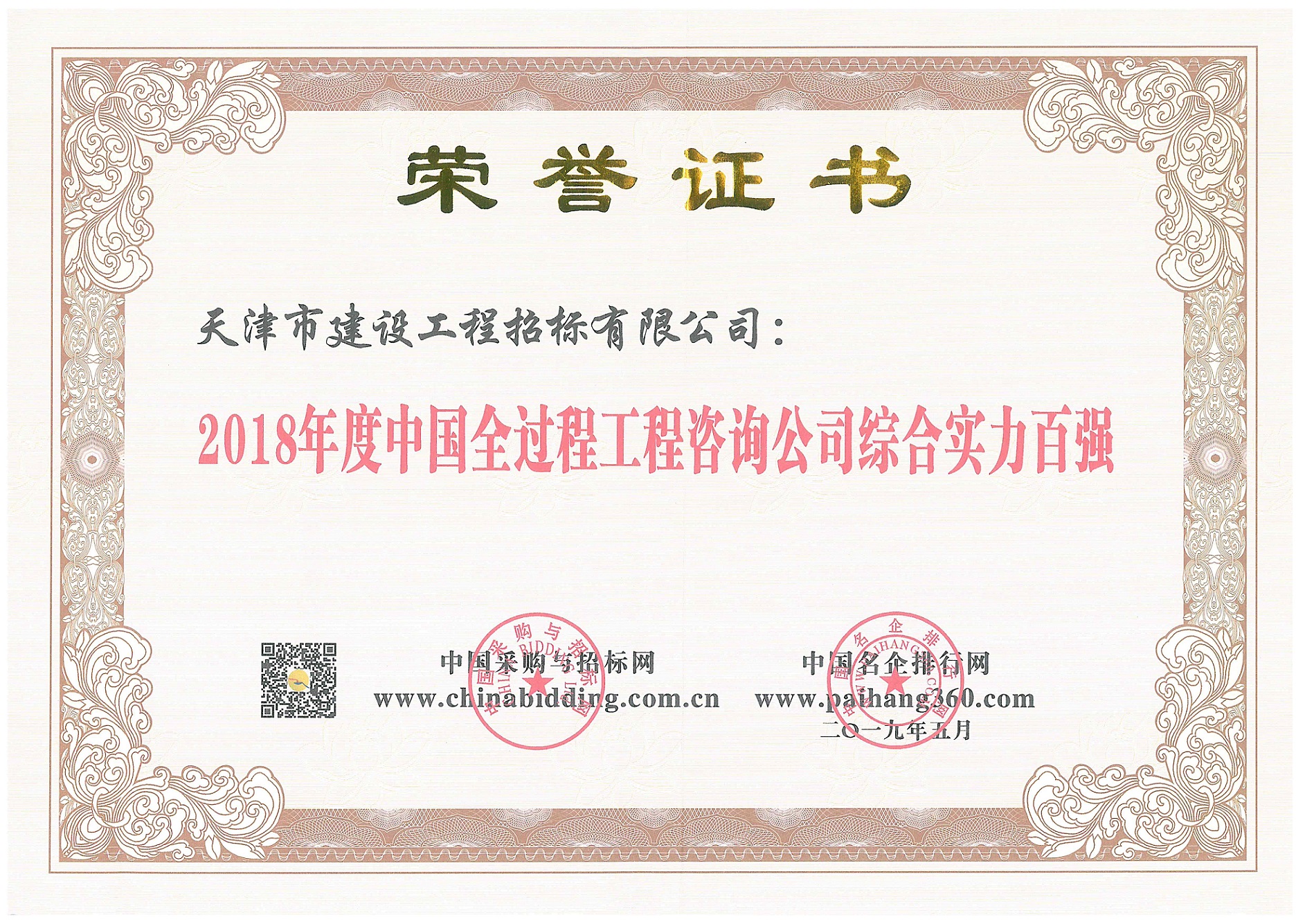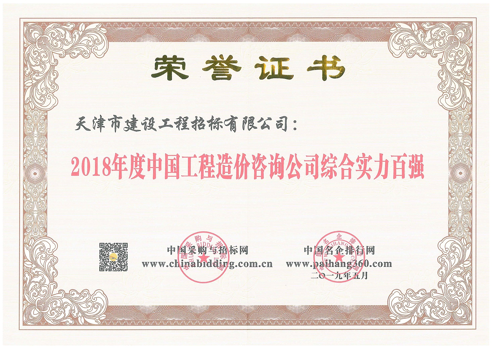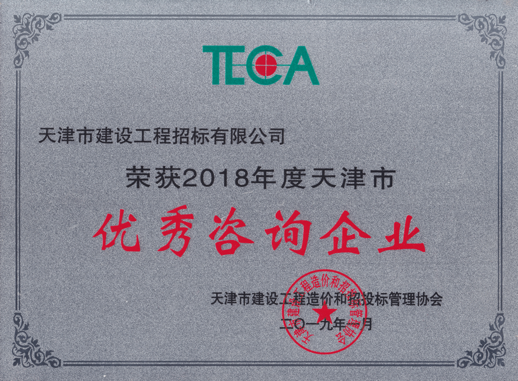2018年度天津市造價(jià)和招投標行業(yè)優(yōu)秀咨詢(xún)企業(yè)