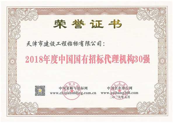 2018年度中國國有招標代理機構30強