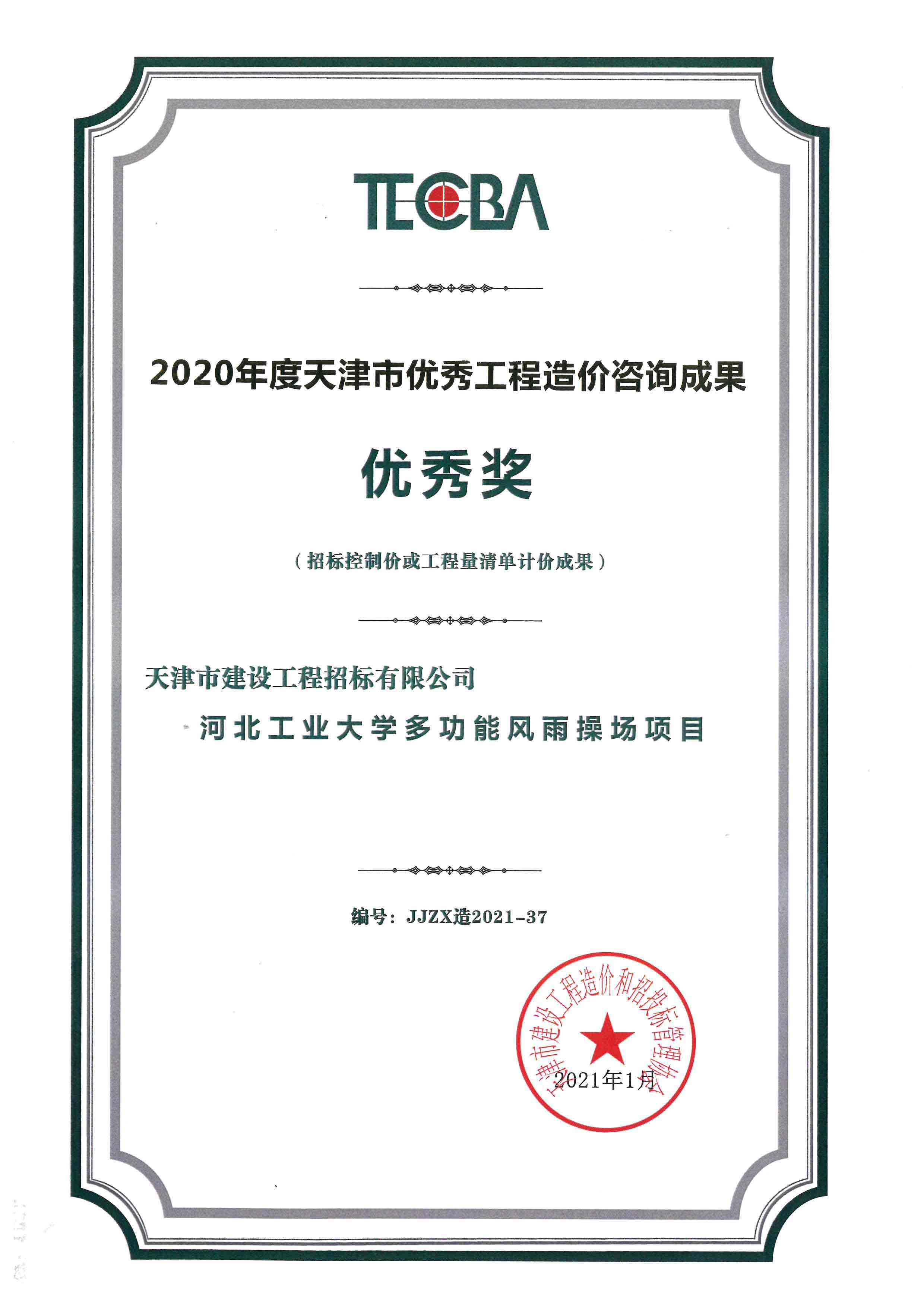2020年度天津市優(yōu)秀工程造價(jià)咨詢(xún)成果優(yōu)秀獎