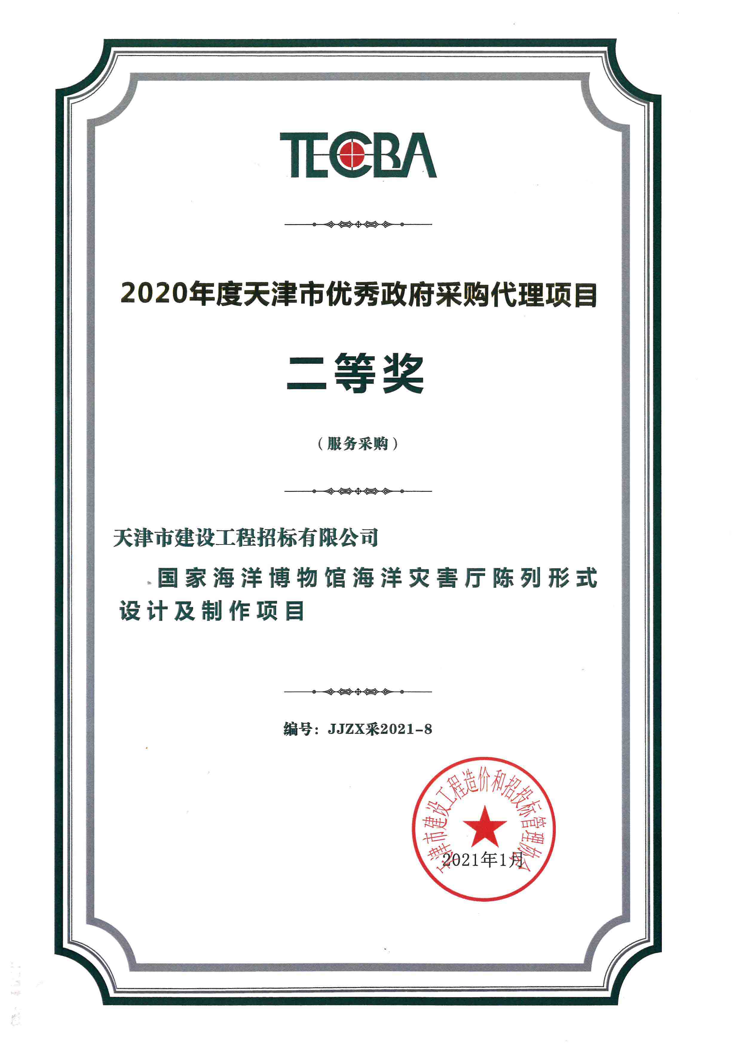 2020年度天津市優(yōu)秀政府采購代理項目二等獎